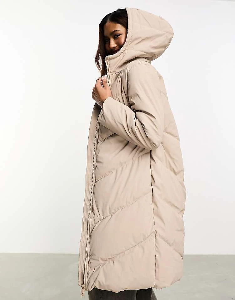 JDY Longline Padded Chevron Coat In Stone For Women Simply Taupe