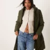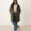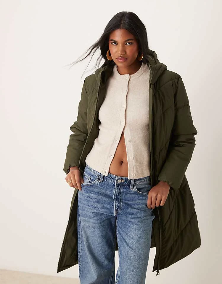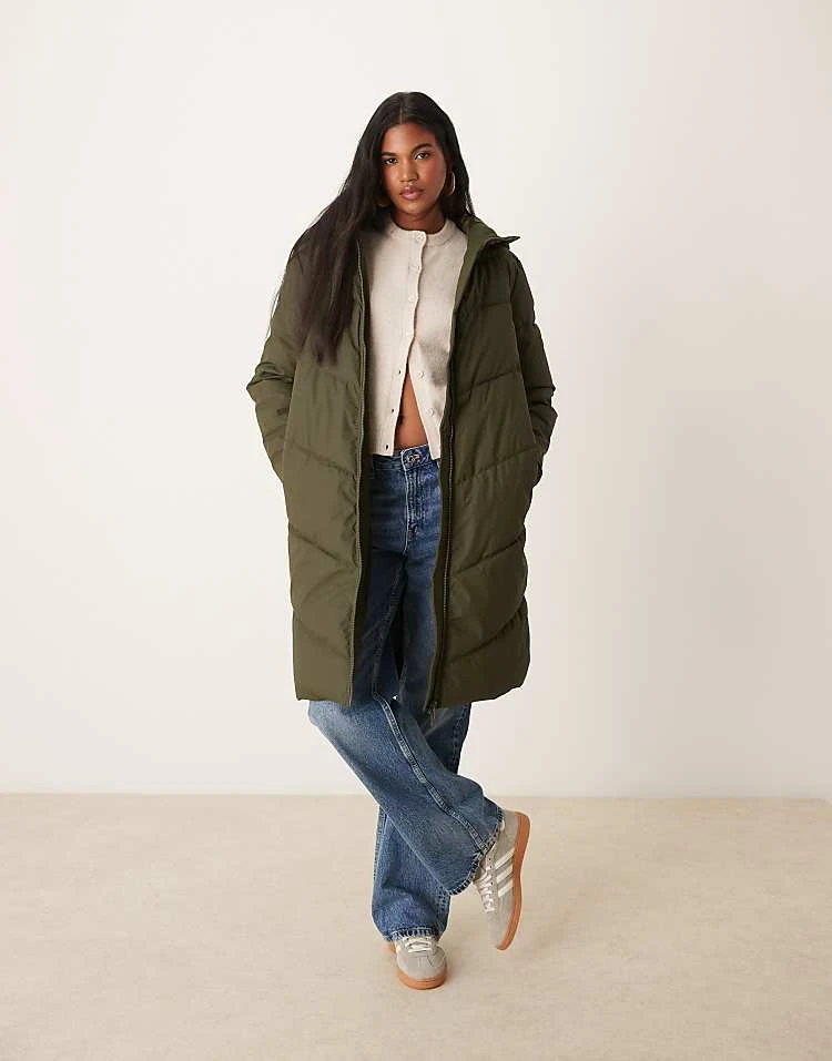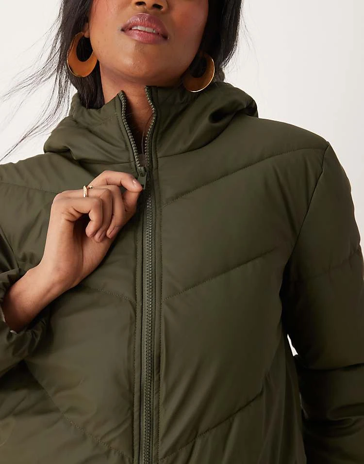 JDY Longline Water Repellent Padded Coat In Dark Green For Women