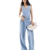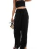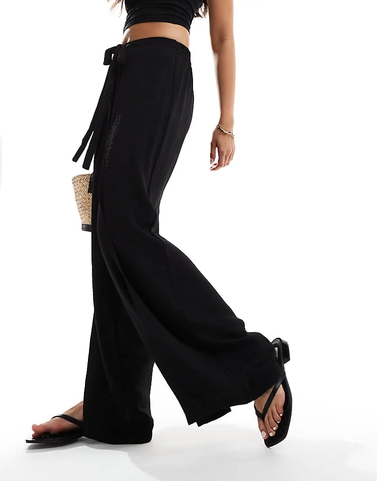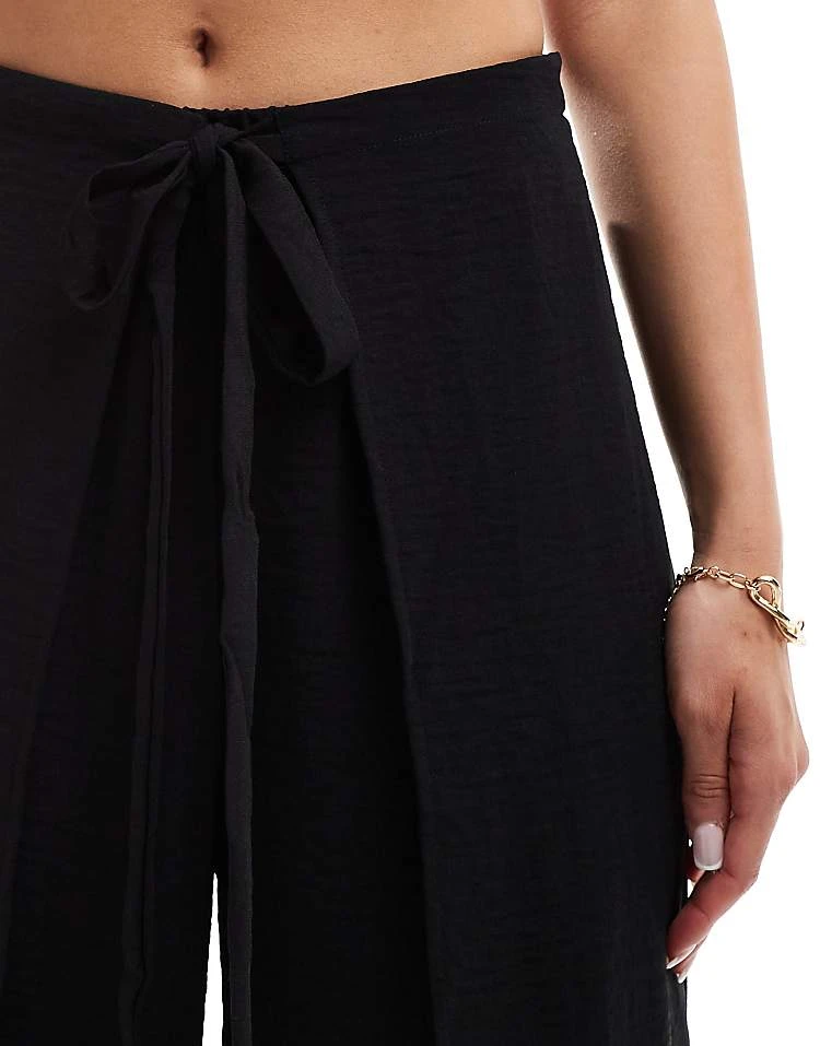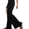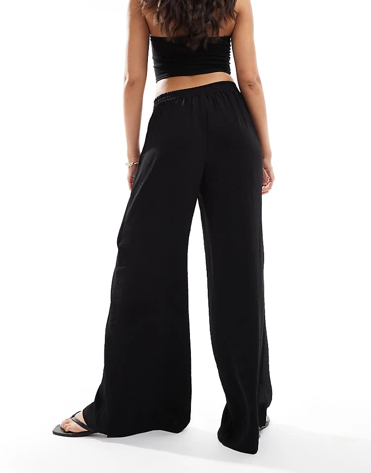JDY Loose Fit Texture Trouser With Layered Side Split In Black For Women