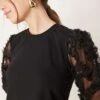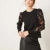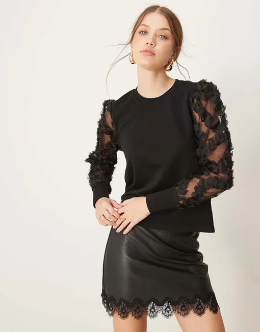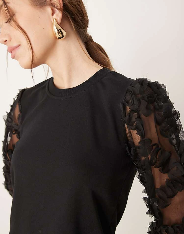 JDY Mesh Flowers Sleeve Jumper In Black For Women