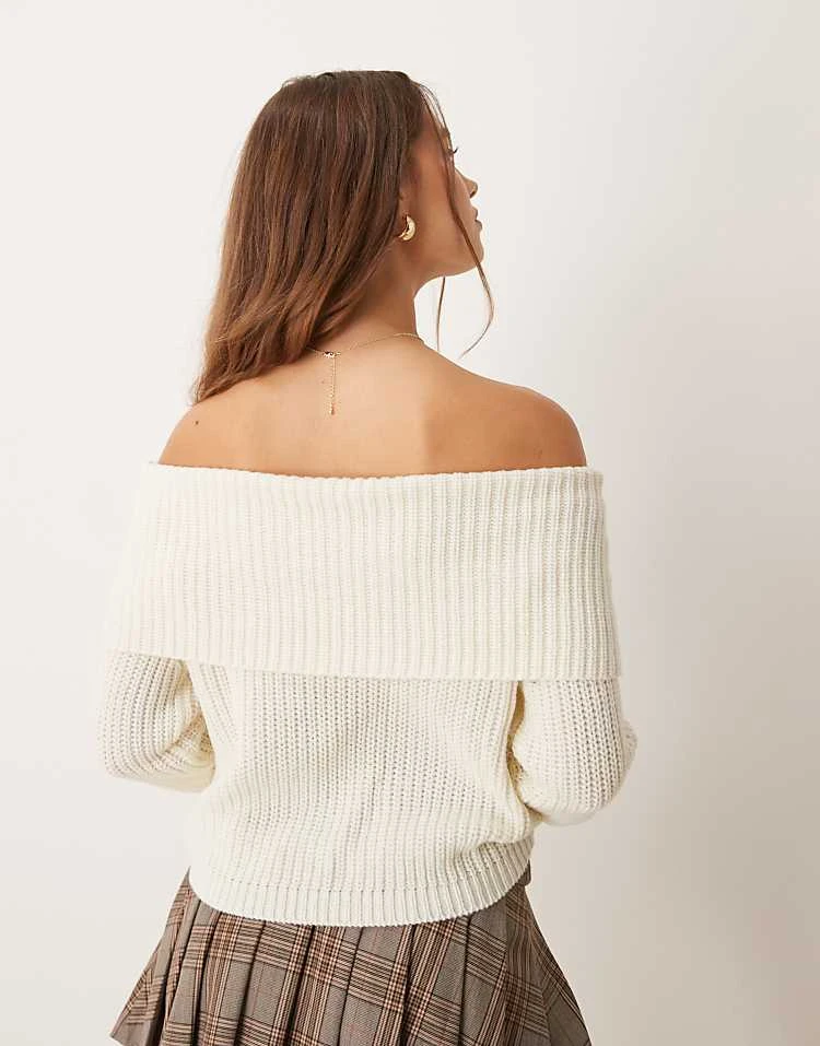 JDY Off Shoulder Ribbed Knitted Jumper In Cream For Women