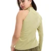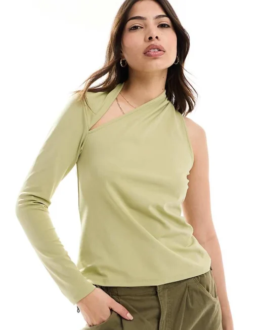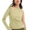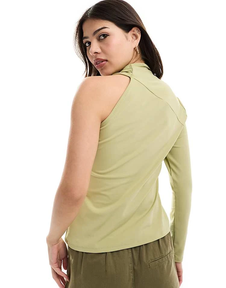 JDY One Sleeve Asymmetric Top In Sage Green For Women Light Green