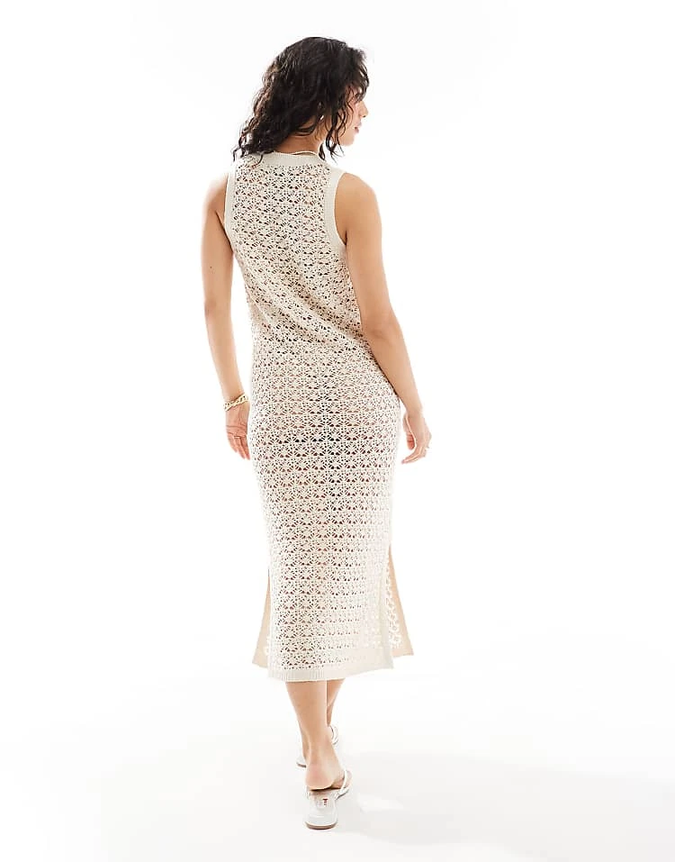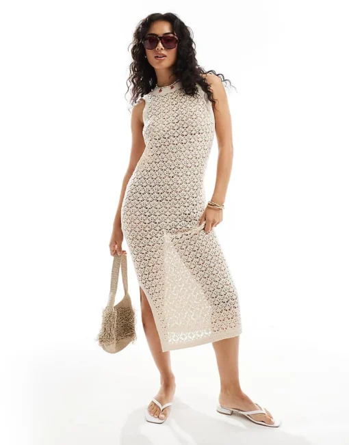JDY Open Crochet Midi Tank Dress In Stone For Women