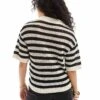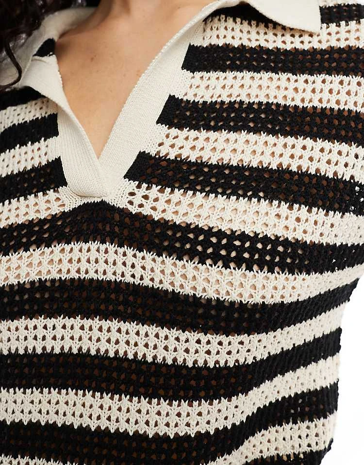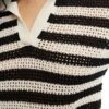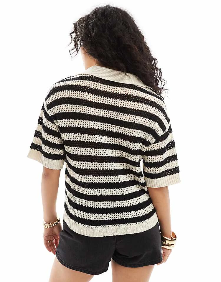 JDY Open Knit Polo Top In Black And White Stripe For Women