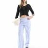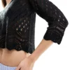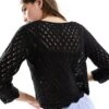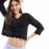 JDY Open Knit Scallop Edge Top In Black For Women