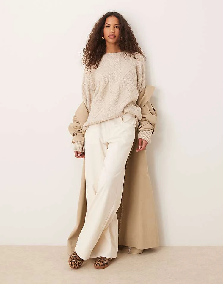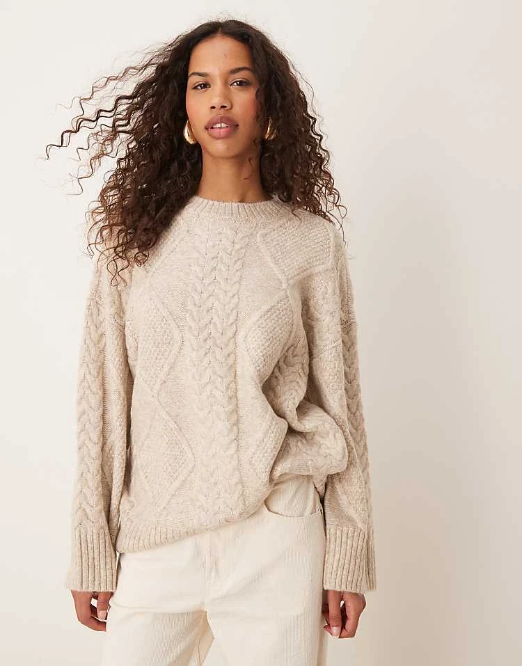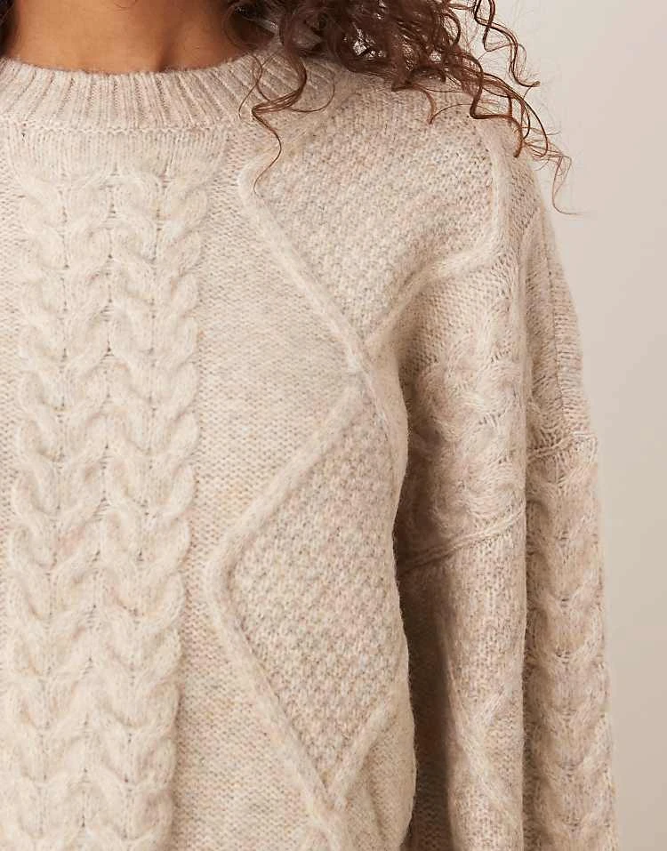 JDY Oversized Cable Knit Jumper In Oatmeal For Women