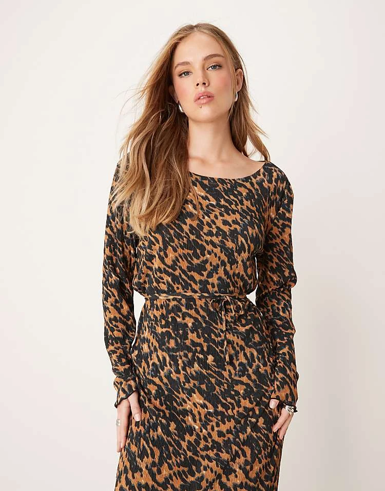 JDY Plisse Belt Midi Dress In Leo Print For Women Animal Pri T