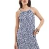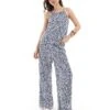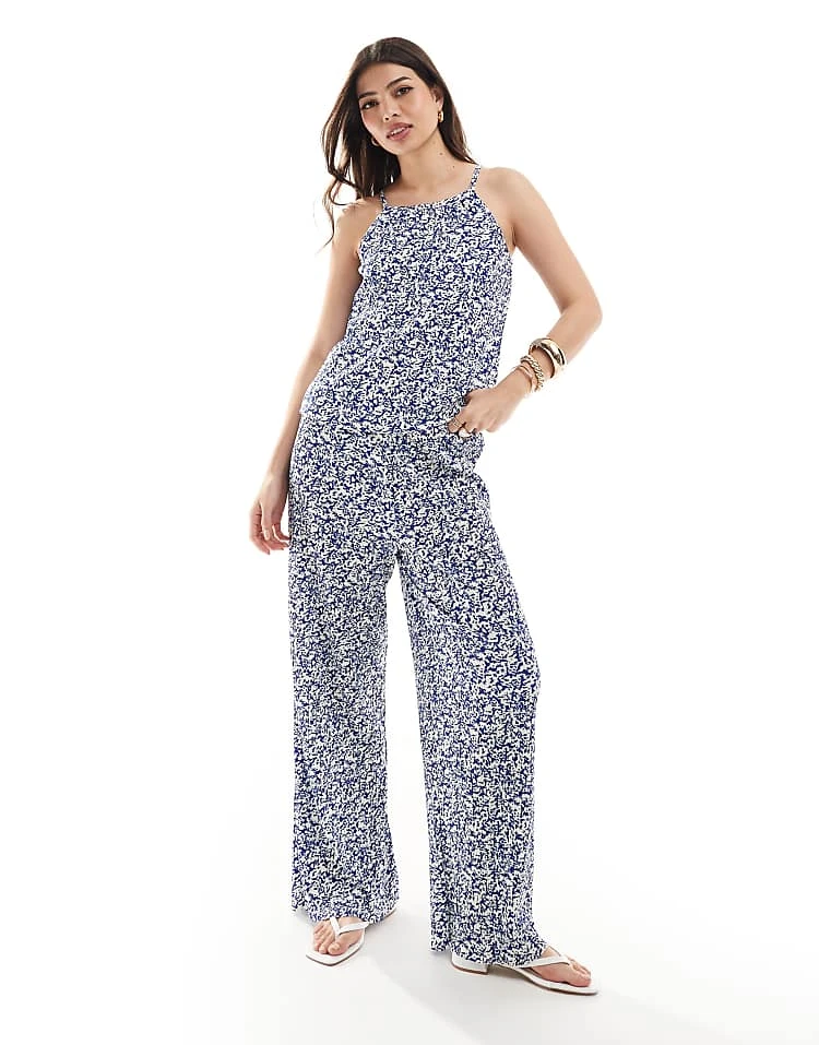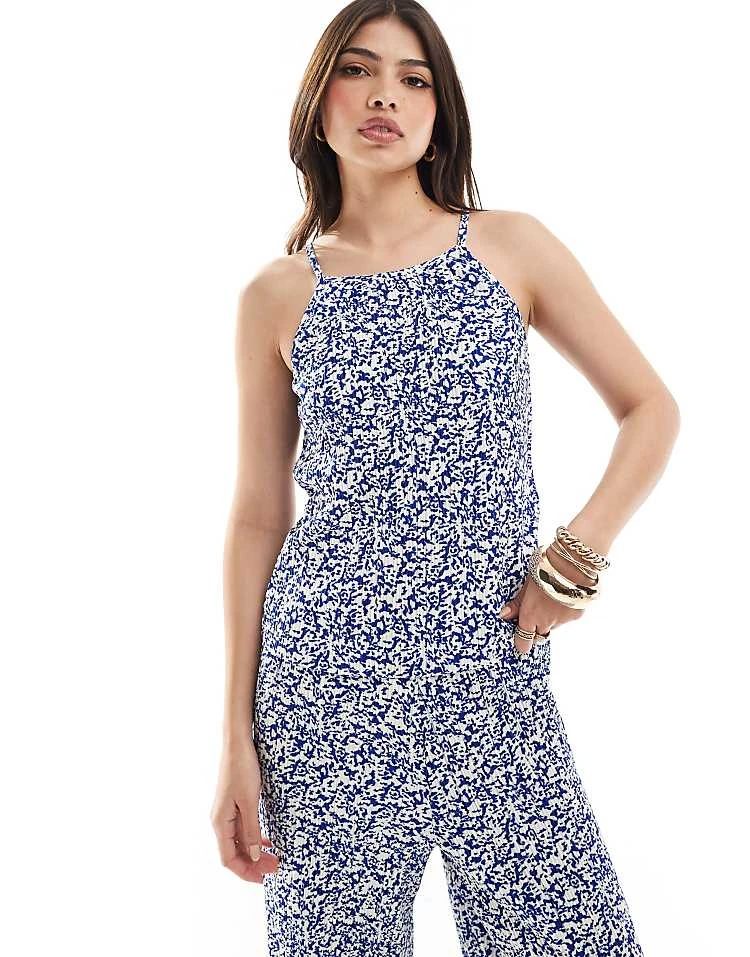 JDY Plisse Tank Top Co-ord In White & Blue Abstract Print For Women Eggnog Multi