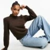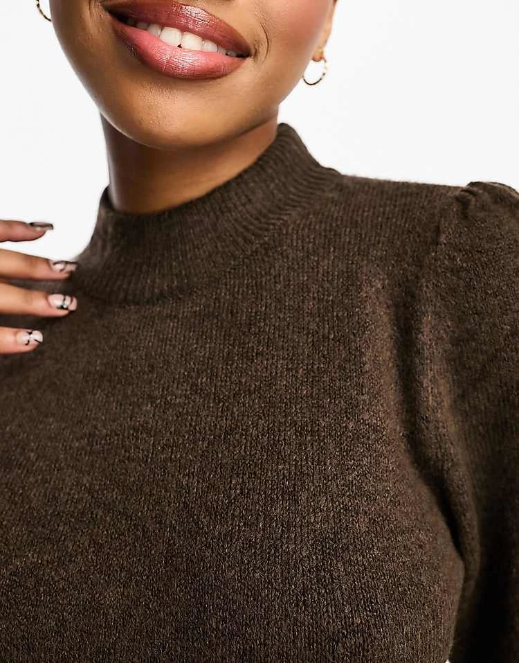 JDY Puff Sleeve Jumper In Chocolate For Women