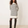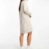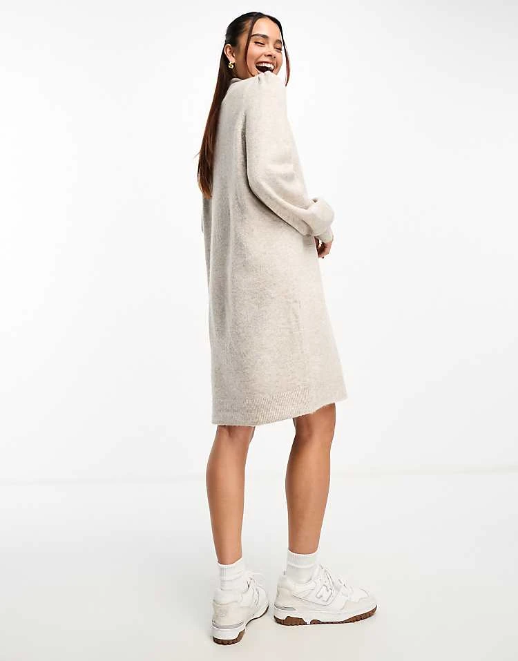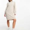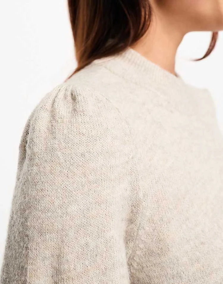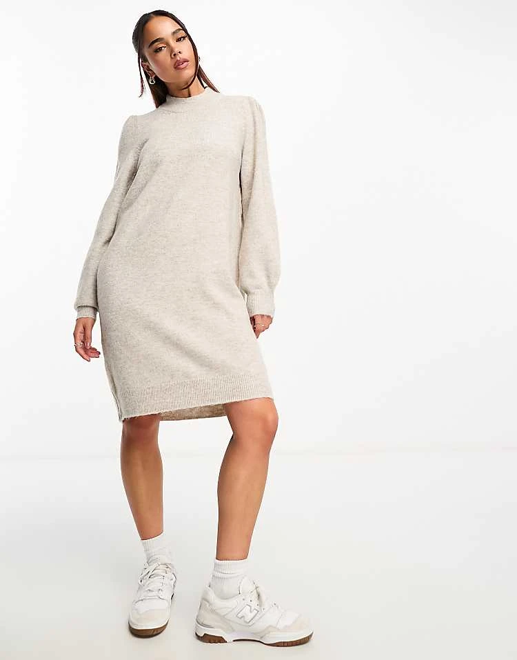 JDY Puff Sleeve Knitted Mini Jumper Dress In Stone For Women Grey