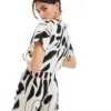 JDY Pull On Textured Short Co-ord In Abstract Mono Print For Women Black