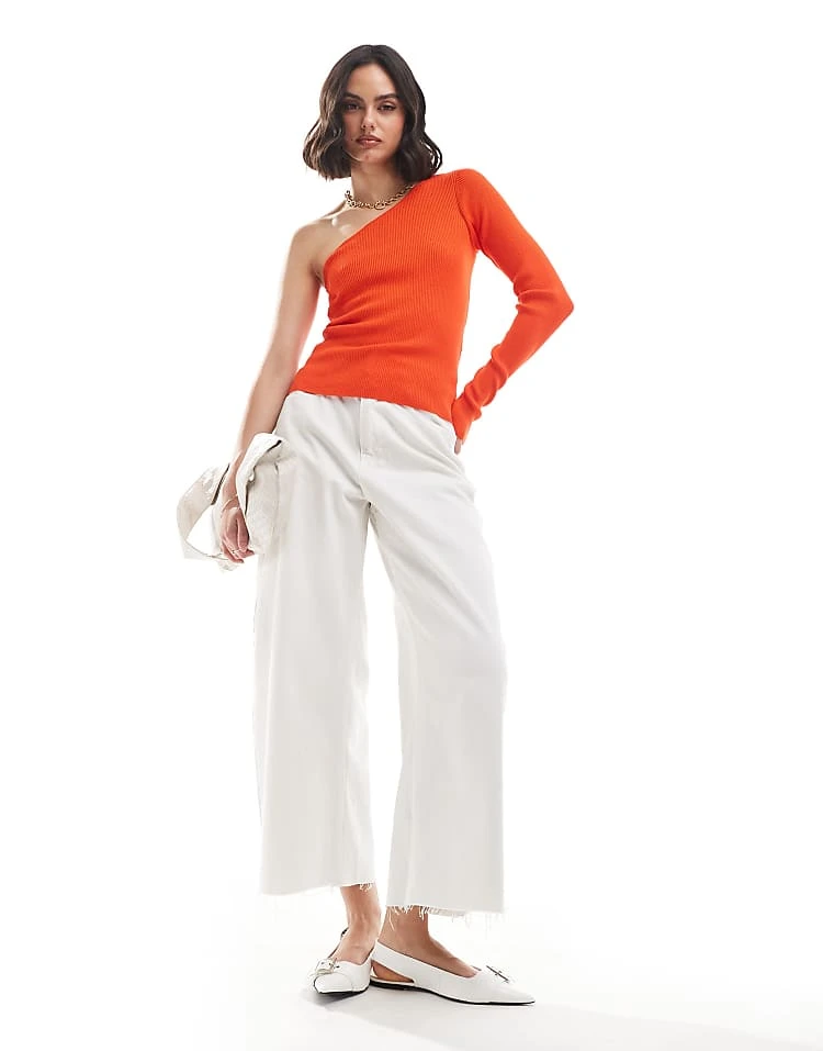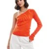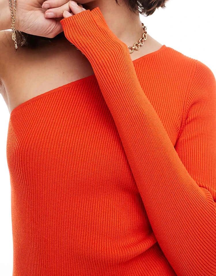 JDY Ribbed One Shoulder Top In Red For Women