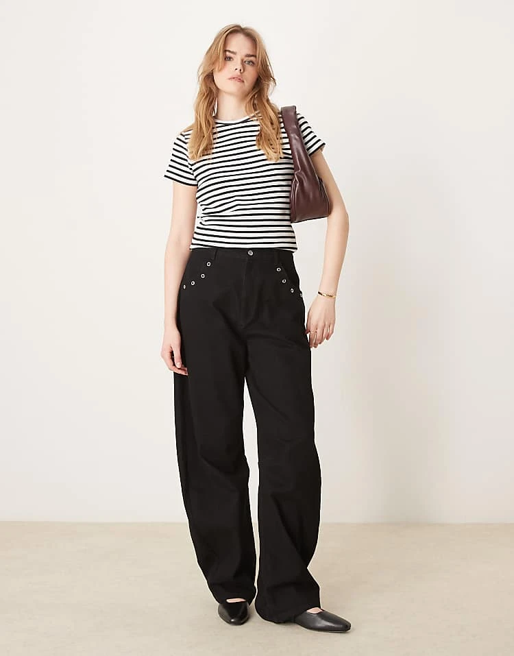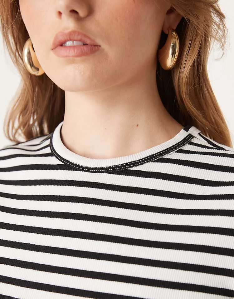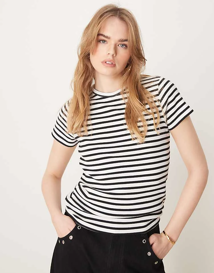 JDY Ribbed T-shirt In Black And White Stripes For Women