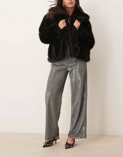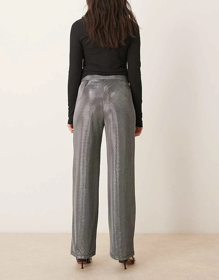 JDY Ribbed Wide Leg Trousers In Silver For Women