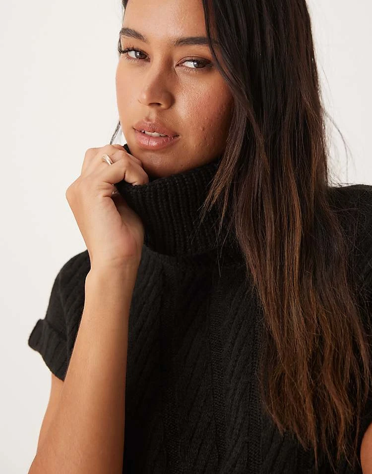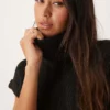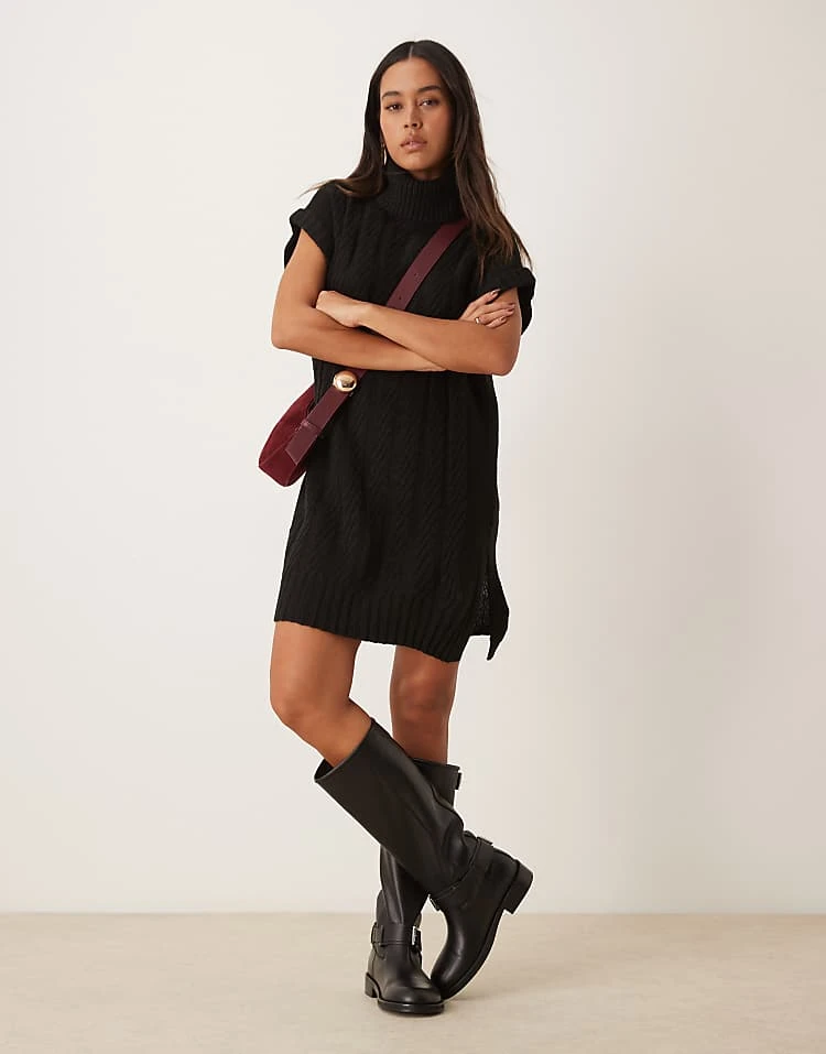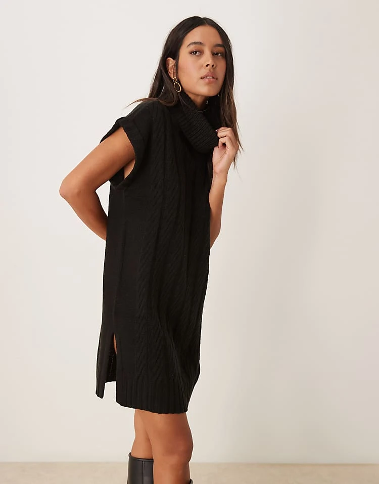 JDY Roll Neck Cable Knit Mini Dress In Black For Women