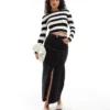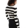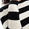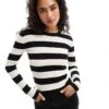 JDY Round Neck Stripe Jumper In Black And White For Women