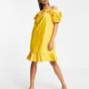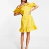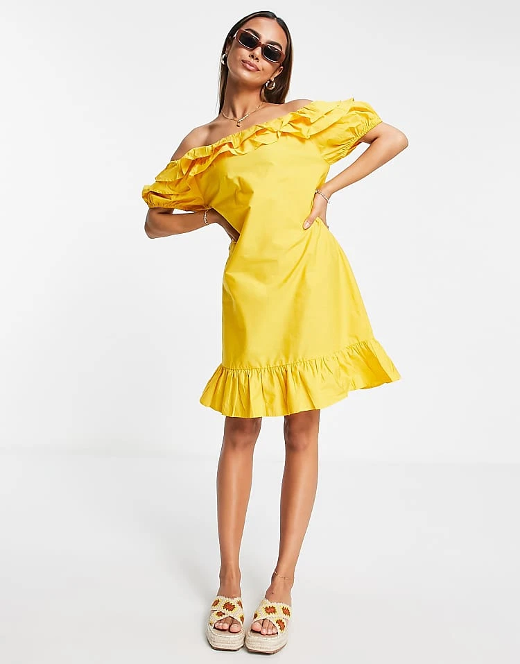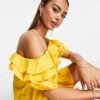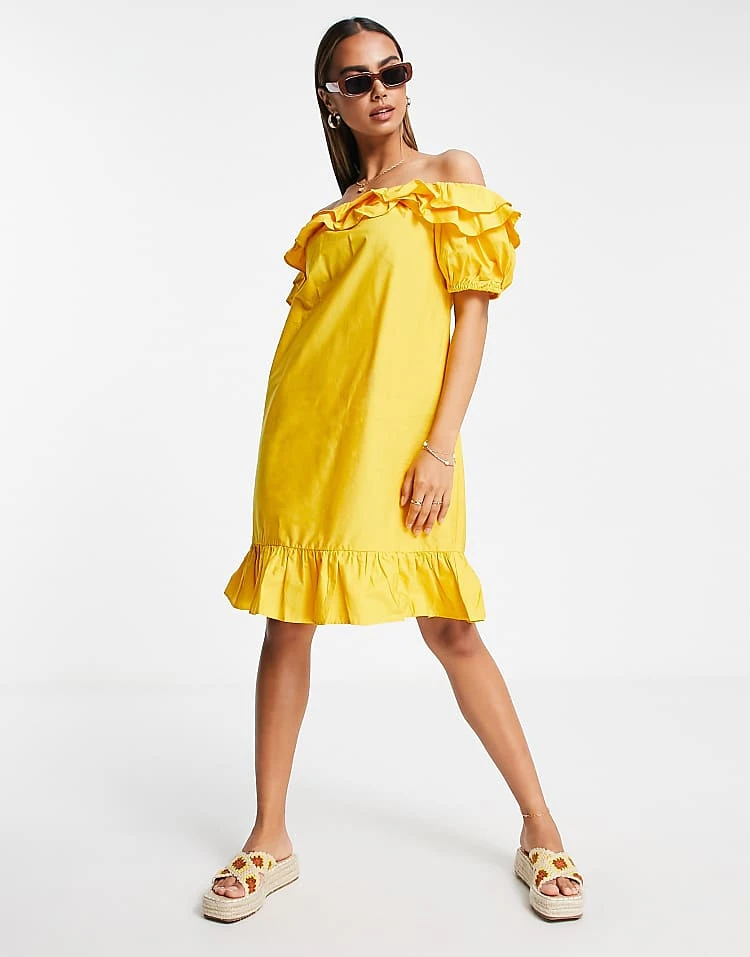 JDY Ruffle Detail Bardot Mini Dress In Yellow For Women