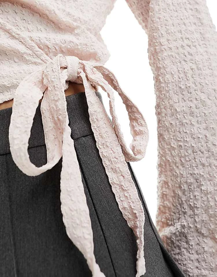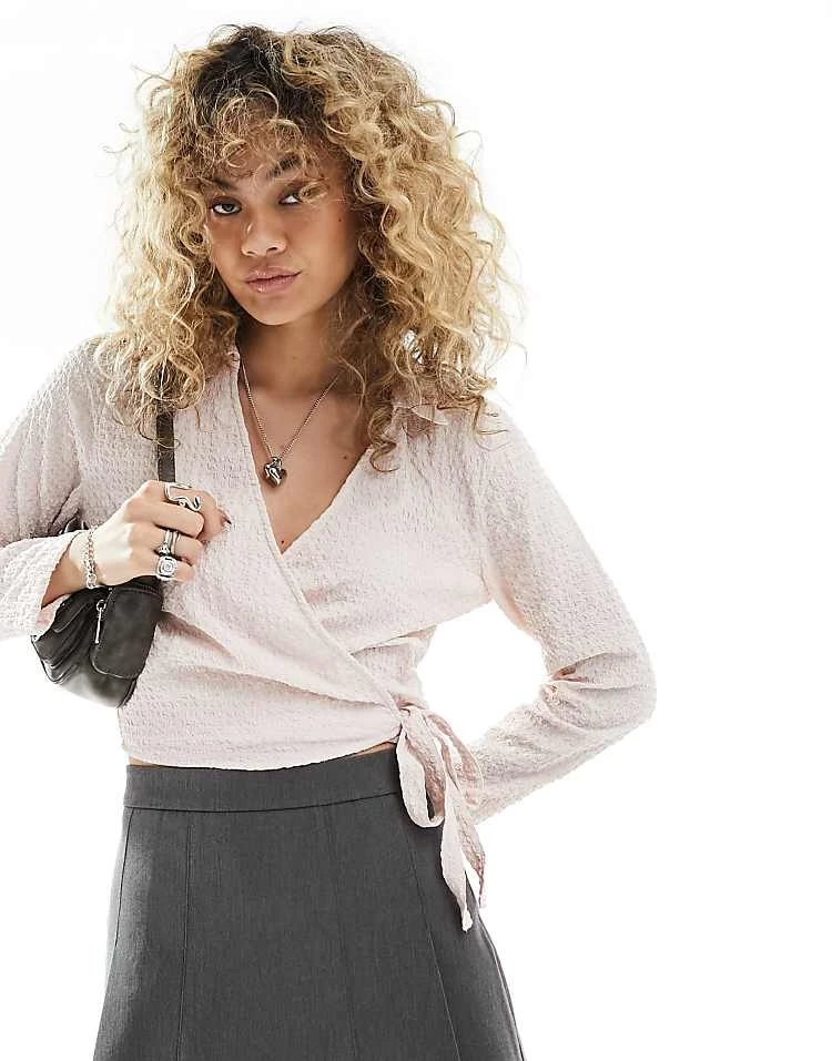JDY Seersucker Wrap Top In Light Pink For Women Hushed Violet