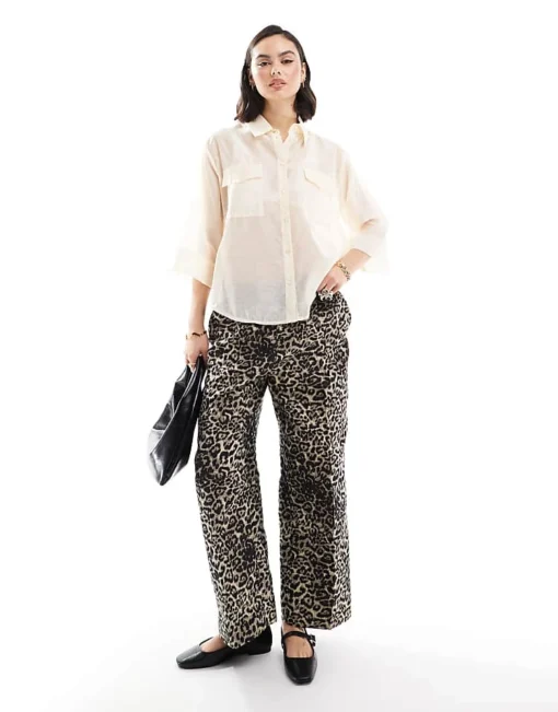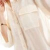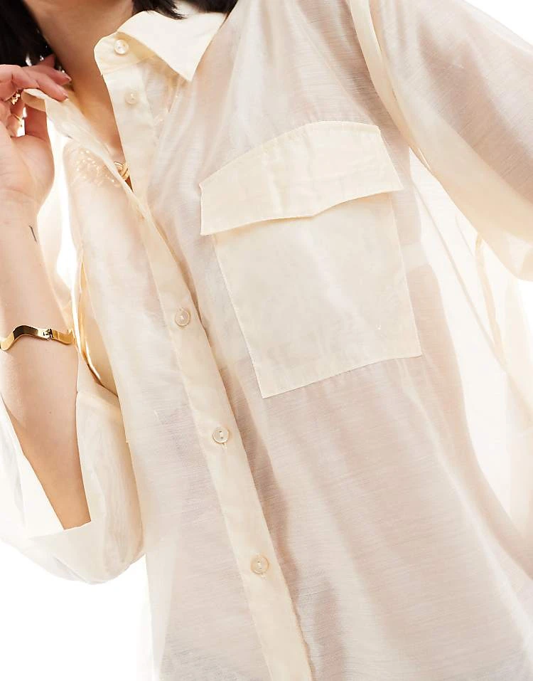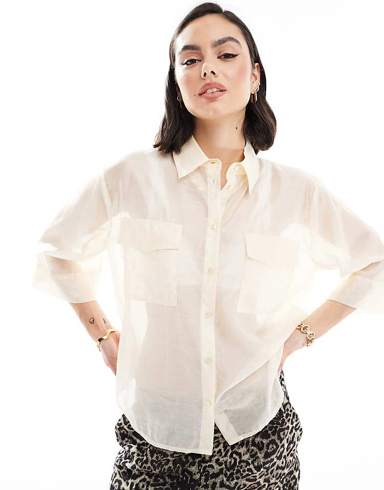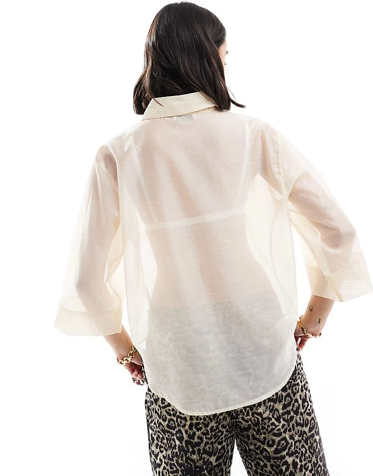JDY Sheer 3/4 Length Sleeve Shirt In Cream For Women