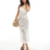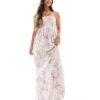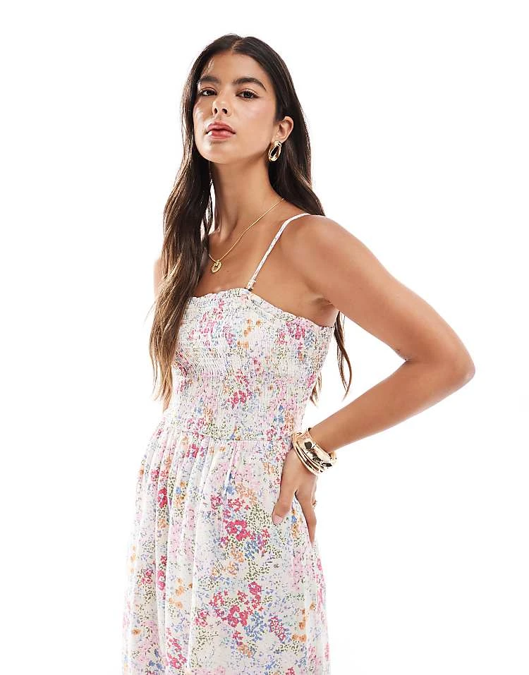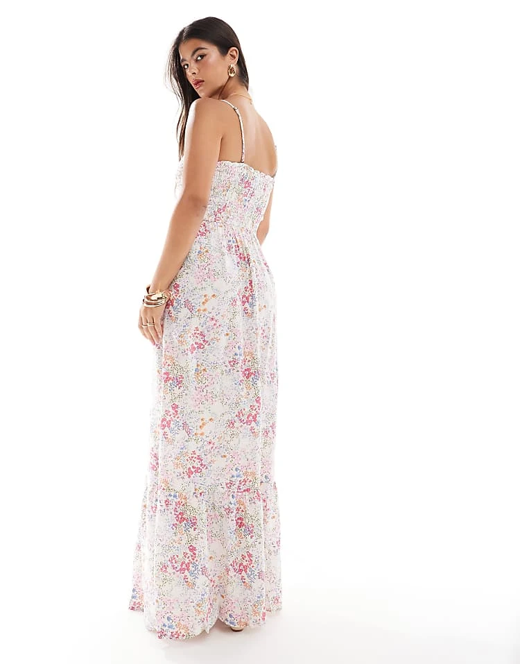 JDY Shirred Top Maxi Dress In Ditsy Pink Floral For Women