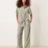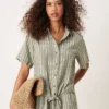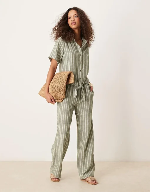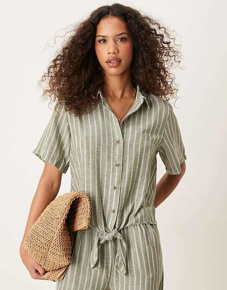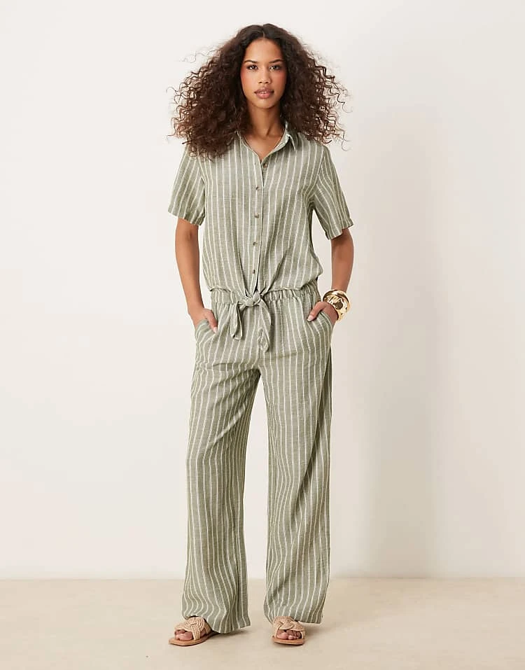 JDY Shirt & Trouser Co-ord In Sage Stripes