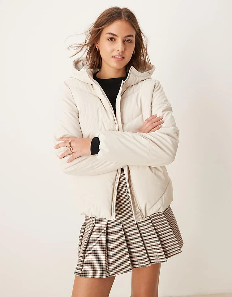 JDY Short Puffer Jacket In Off White For Women