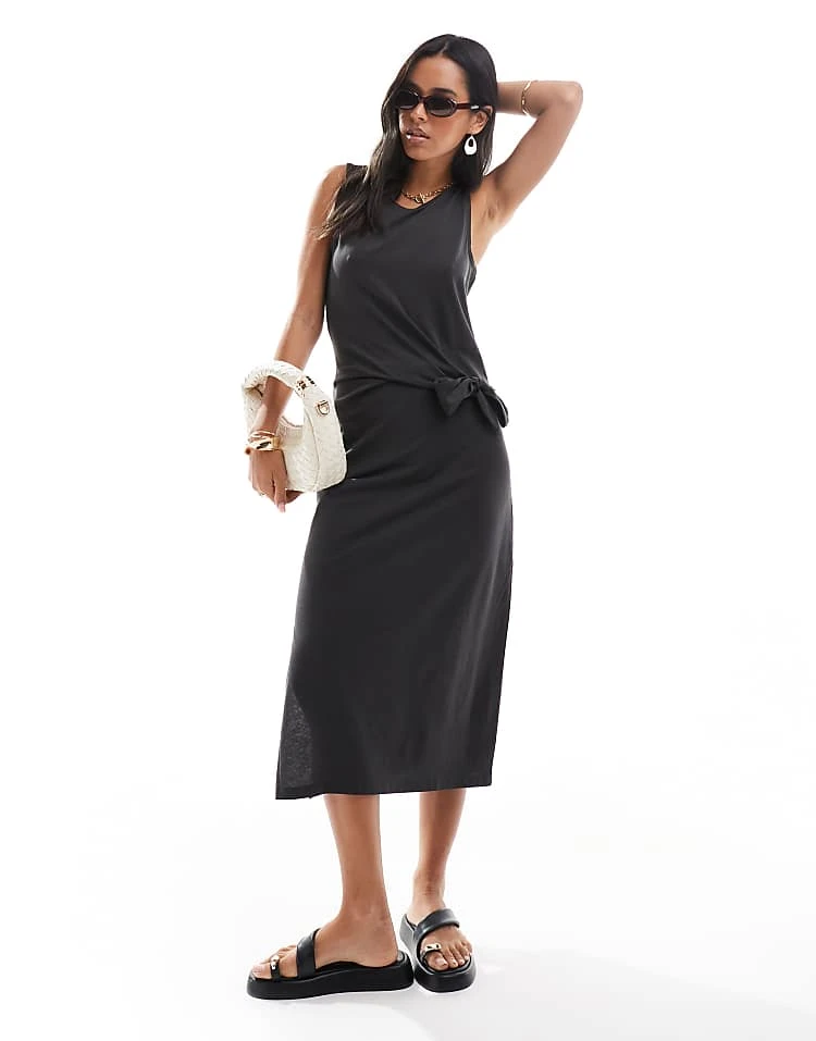 JDY Sleeveless Knot Midi Dress In Black For Women