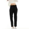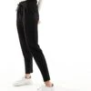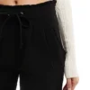 JDY Slim Fit Trousers With Frill Waistband In Black For Women