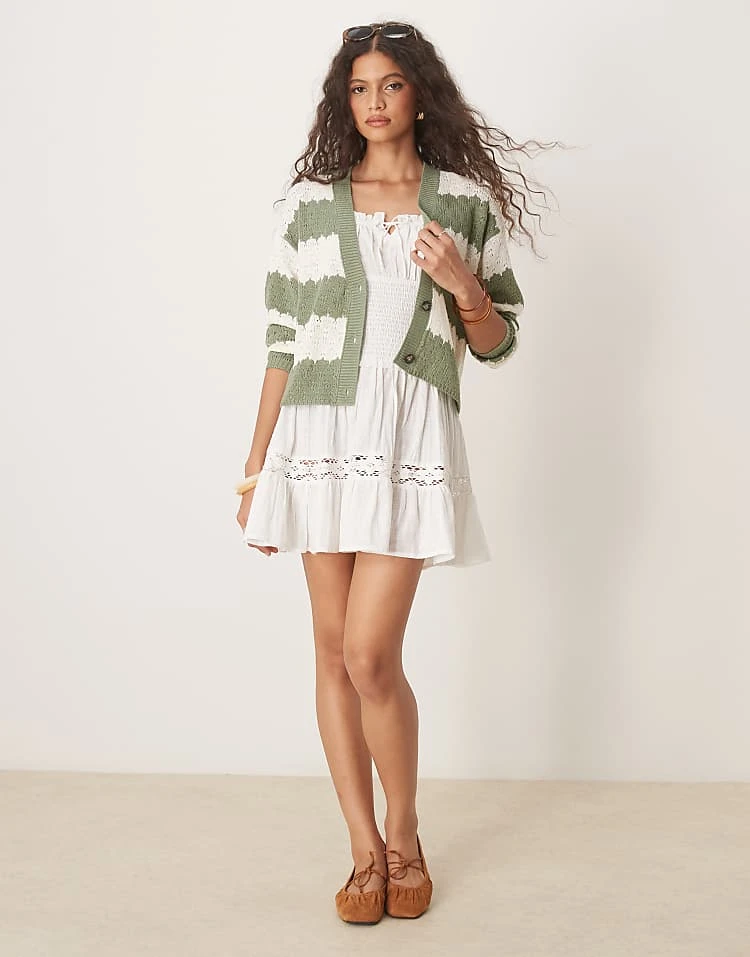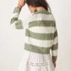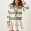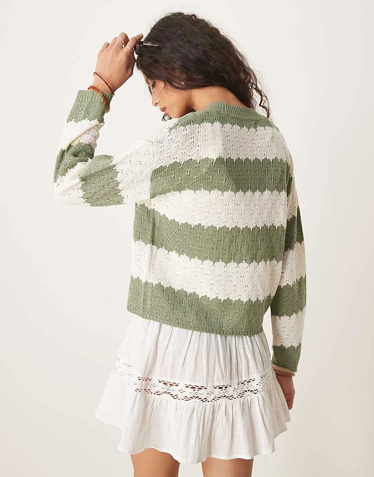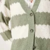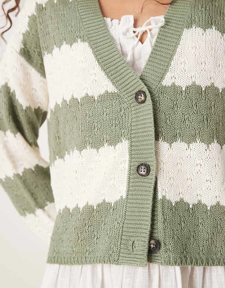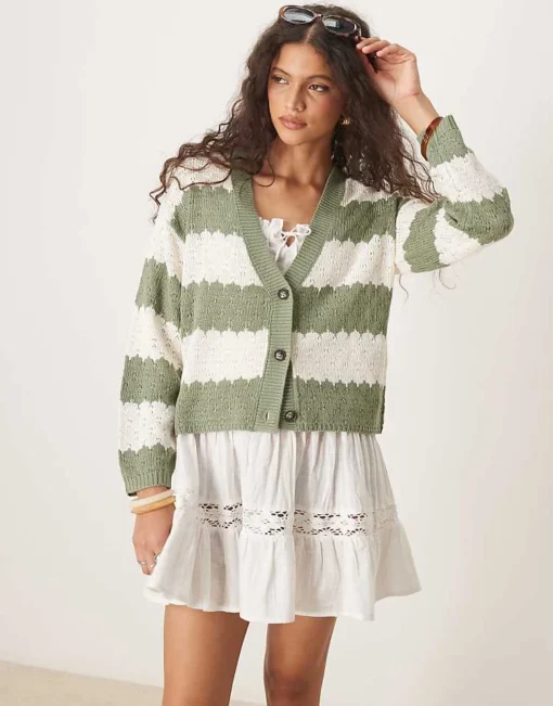 JDY Slouchy Open Knit Cardigan In Green Stripes For Women Light Green