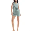 JDY Tailored Playsuit In Sage Green For Women Light Green
