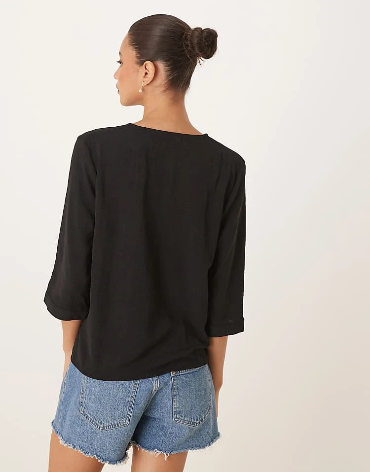 JDY Textured 3/4 Sleeve Shirt In Black For Women