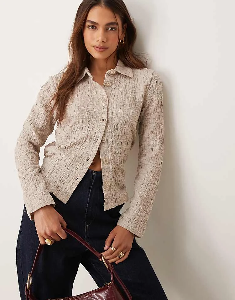 JDY Textured Shirt In Beige For Women