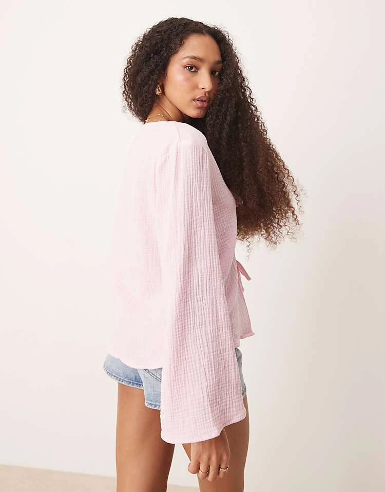 JDY Tie Front Cheesecloth Shirt In Pink For Women