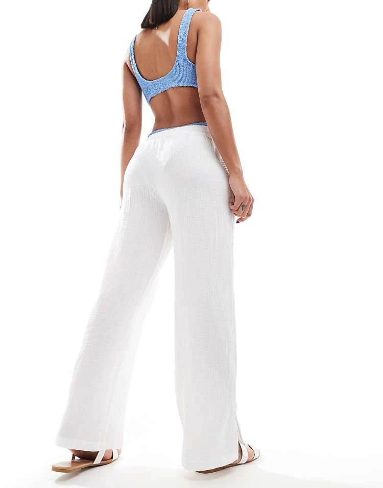 JDY Tie Waist Wide Leg Trouser In White For Women