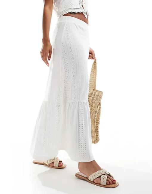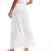 JDY Tiered Pointelle Maxi Skirt In Off White For Women