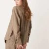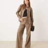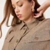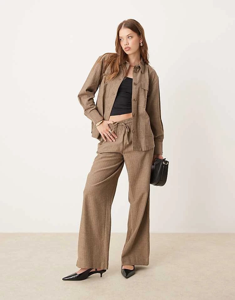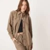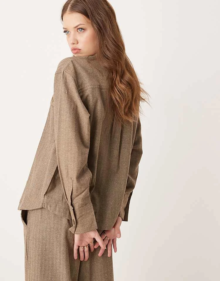 JDY Utility Pocket Shirt Co-ord In Brown Heringbone For Women