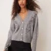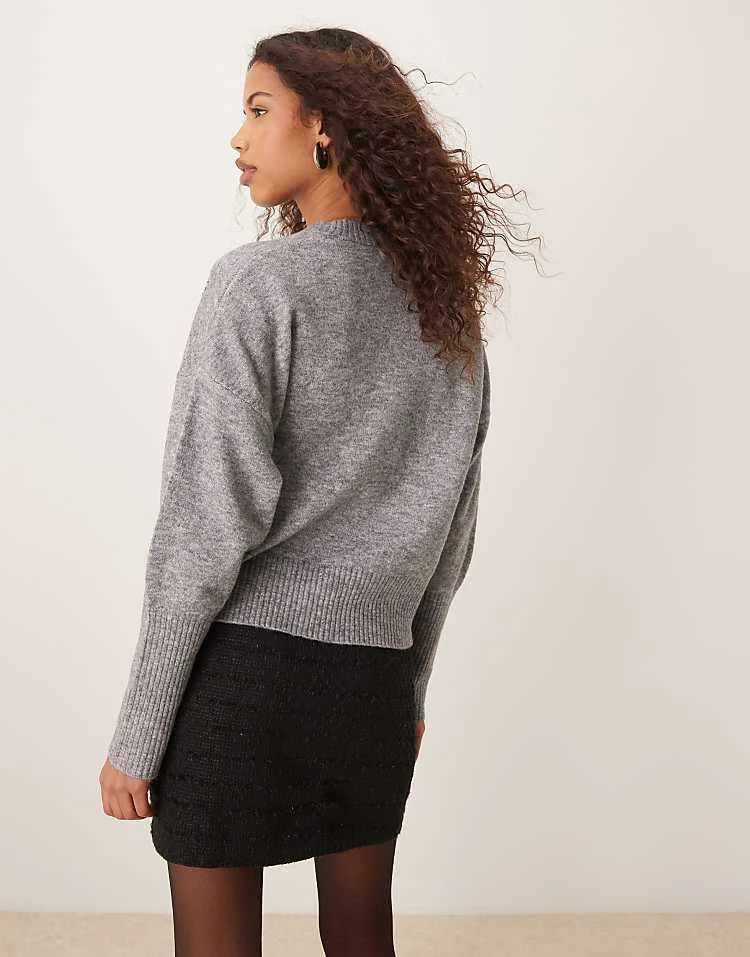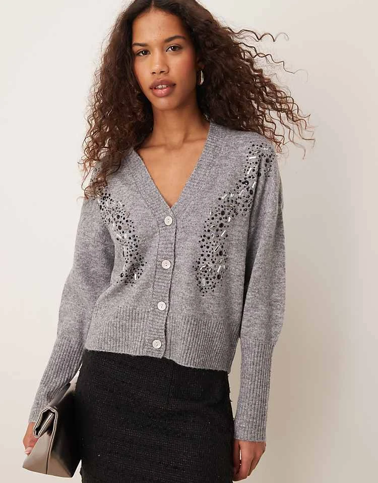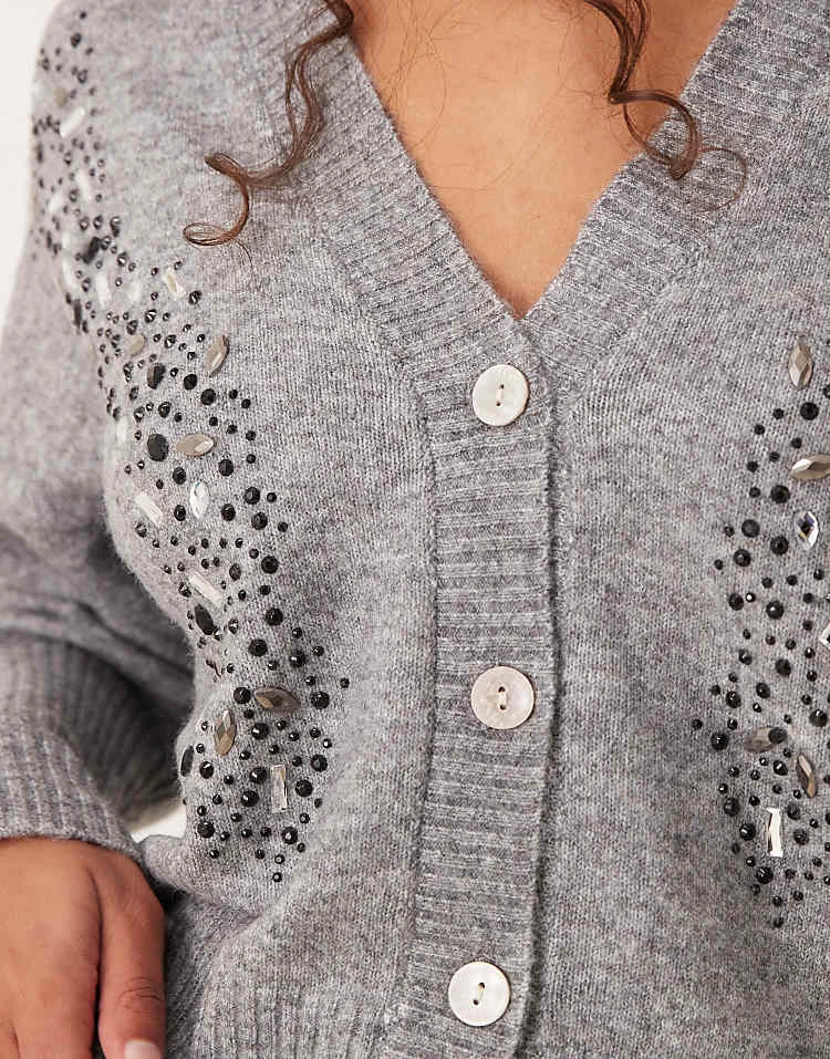 JDY V-neck Cardigan In Mid Grey Melange For Women