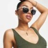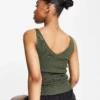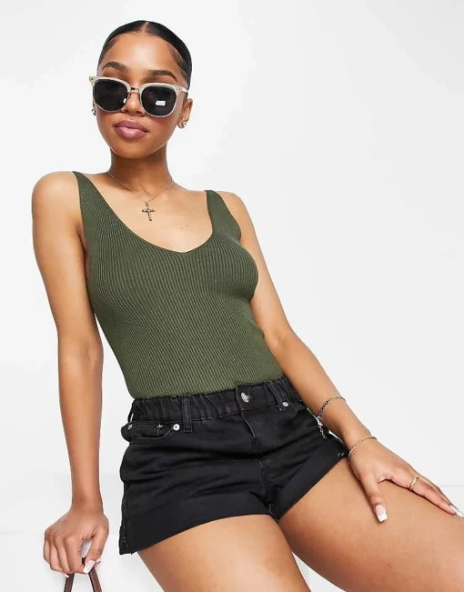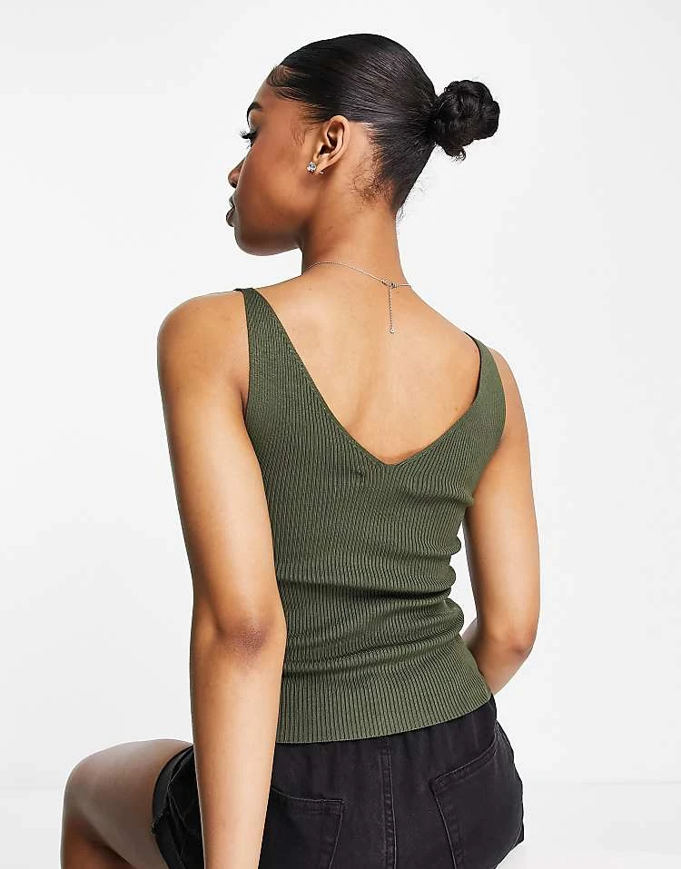 JDY V Neck Knitted Vest Top In Khaki For Women