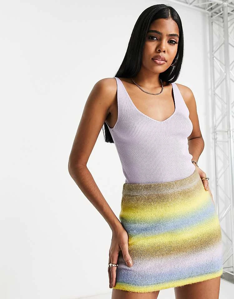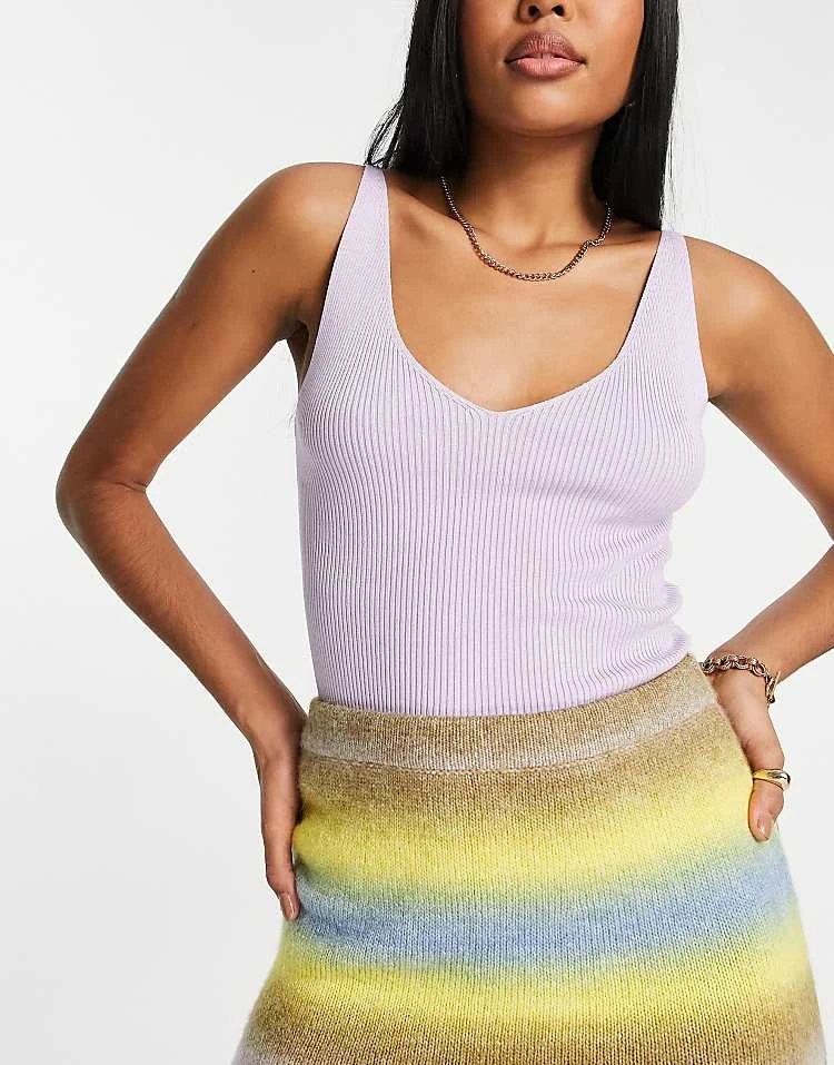 JDY V Neck Knitted Vest Top In Lilac For Women