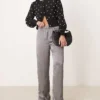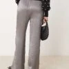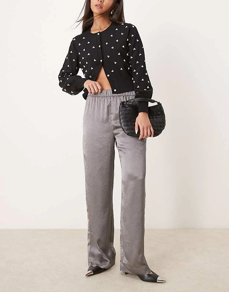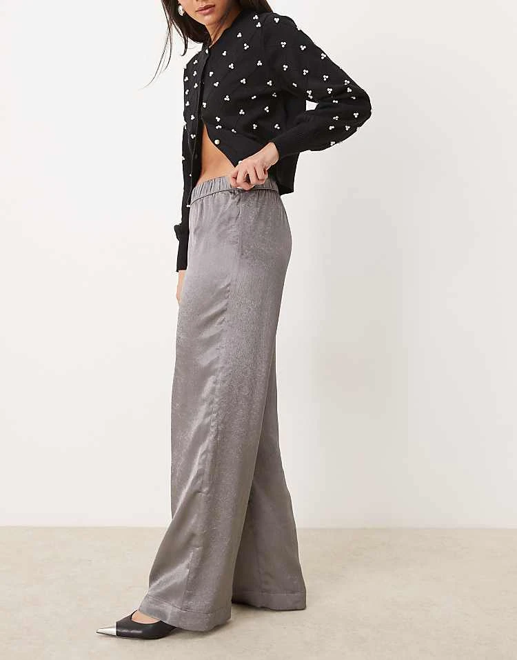JDY Wide Leg Metallic Trousers In Grey For Women