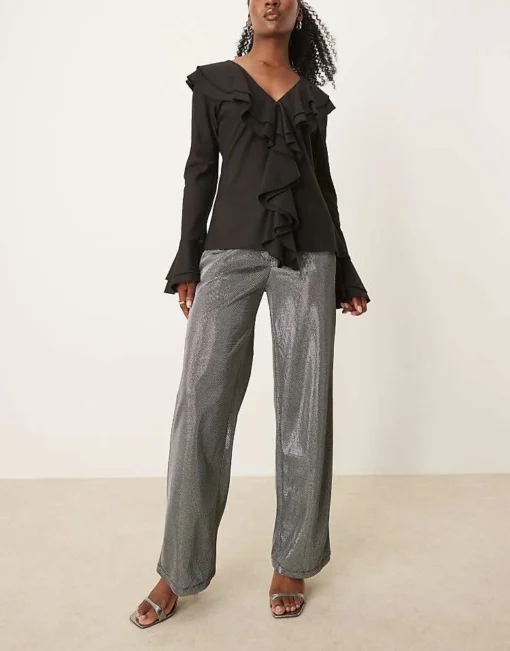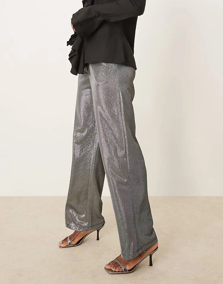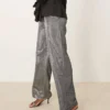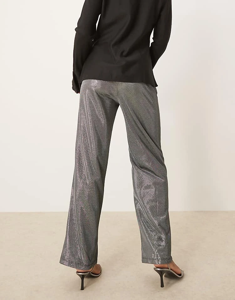 JDY Wide Leg Trousers In Metallic Silver For Women