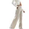 JDY Wide Leg Trousers With Cargo Pockets In Texture Beige For Women