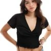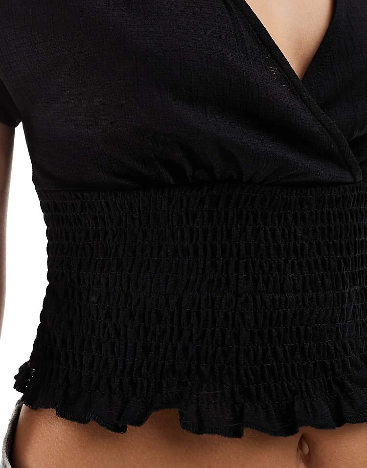JDY Wrap Front Shirred Waist Top In Black For Women