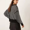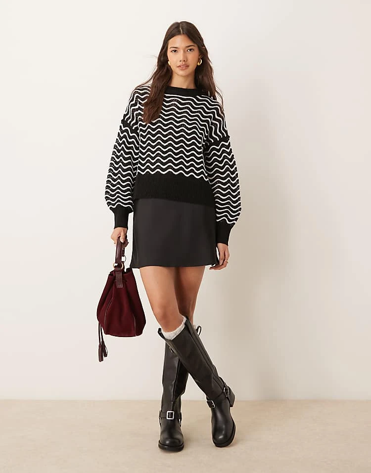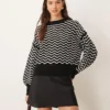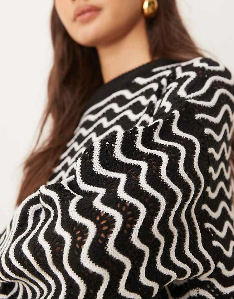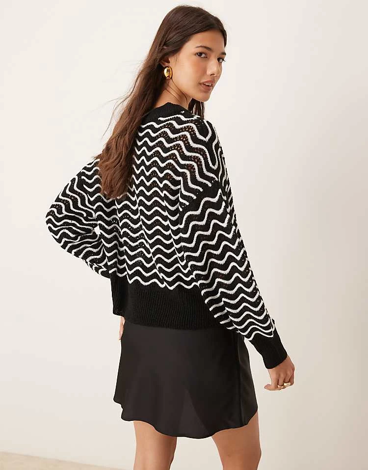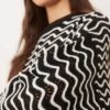 JDY Zig Zag Stripe Detail Jumper In Black And White For Women Black/white